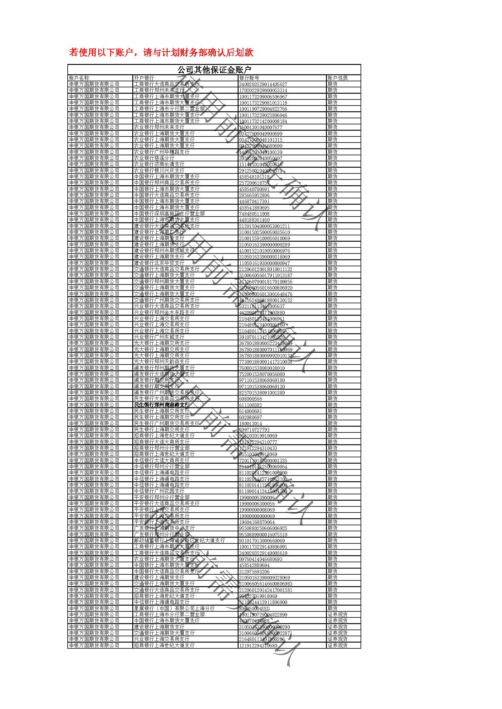 | 申银万国期货有限公司 | 招商银行上海世纪大道支行 | 955103019910131 | 308290003521 | 银期账户 |